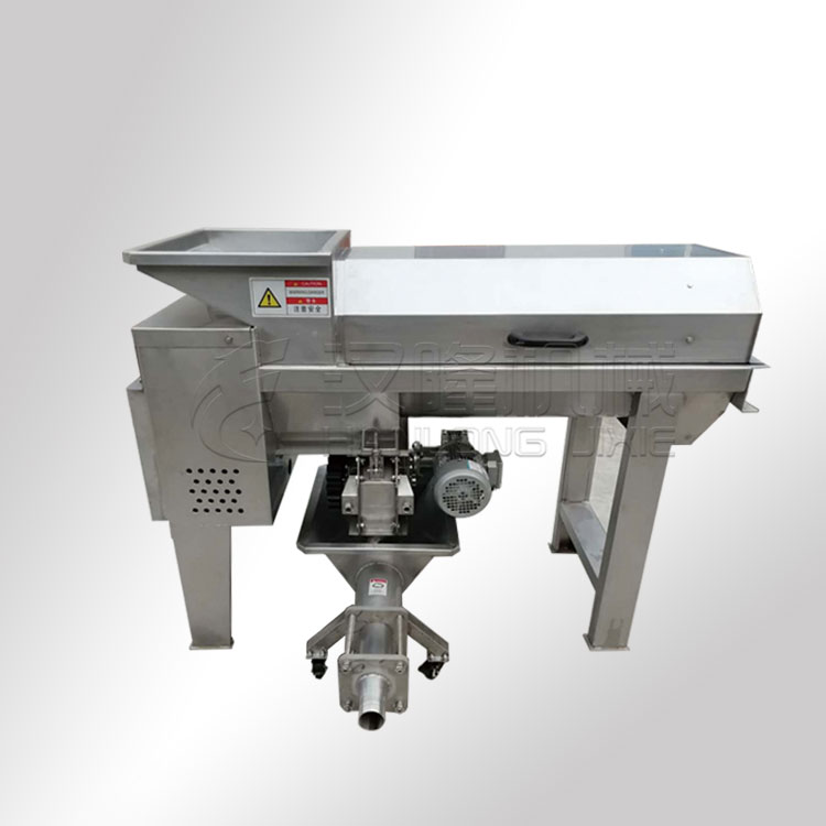 葡萄由进料斗通过供料螺旋定量进入除梗转筛内,由于除梗轴的旋转作用,除梗轴上的叶片将葡萄果粒与果梗打散分离。除梗叶片成螺旋状安装在主轴上,并高速旋转将梗枝由转筛未端排出机外。除梗后的果粒从转筛上的圆孔落入下部破碎装置中,果粒经两组破碎辊的旋转挤压作用破碎至工艺要求。破碎后的果浆落入下部的单螺杆输浆泵内,输送至下一工艺过程。